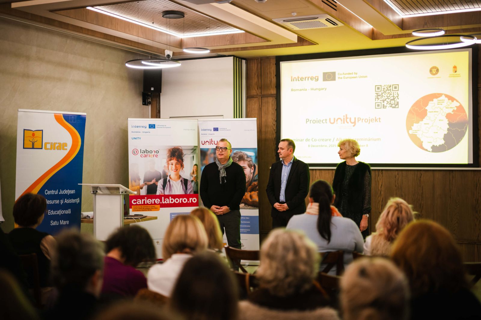 În data de 8 decembrie 2025, Asociația AGES a organizat la Restaurant No Pardon din Satu Mare Seminarul Transfrontalier de Co-creare: Soluții pentru Orientarea în Carieră, eveniment dedicat finalizării proiectului UNITY – Fostering sustainable cross-border cooperation for a more effective support of youth career guidance, derulat în parteneriat cu CJRAE Satu Mare și Ötlet a Vidékért Egyesület (Ungaria). Seminarul a reunit consilieri școlari, profesori, reprezentanți ai mediului economic și ai sectorului ONG din cele două județe partenere, oferind un spațiu comun de analiză și dezvoltare de soluții pentru sprijinirea tinerilor în alegerea carierei.